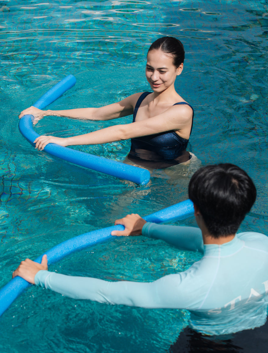 The natural buoyancy of our seawater Thalasso Pool lends itself well to other effective stretching exercises.